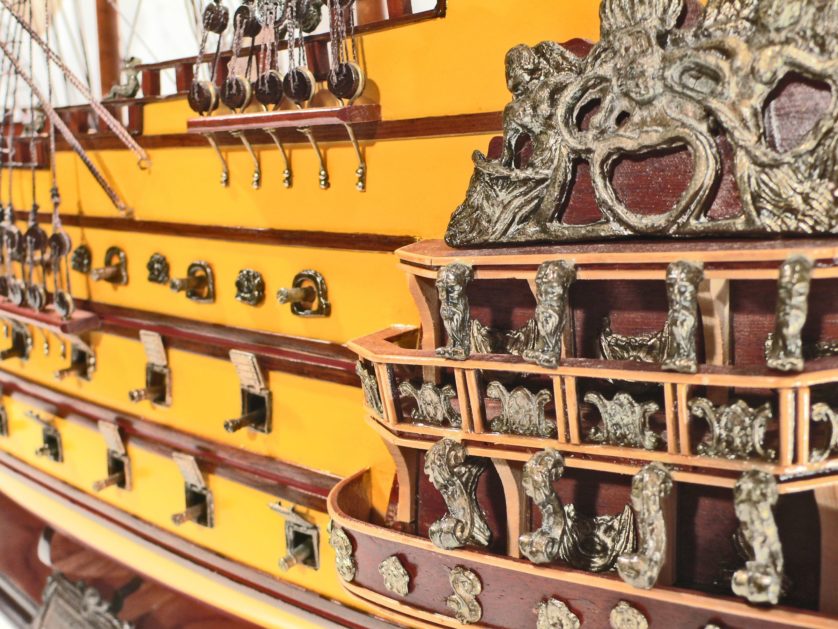 Bei dem dargestellten Schiffsmodell handelt es sich um eine maßstabsgetreue Nachbildung der Le Soleil Royal 1669.