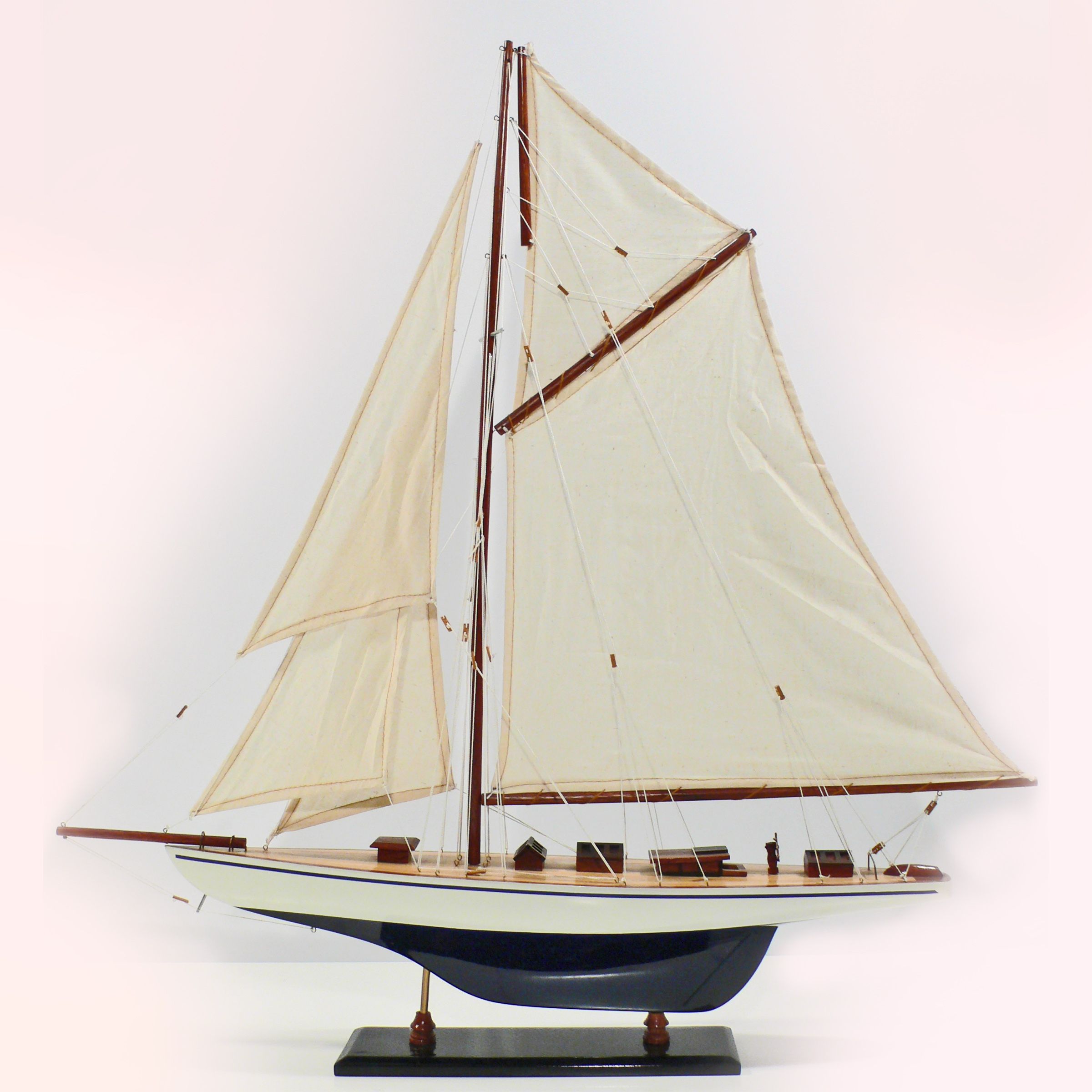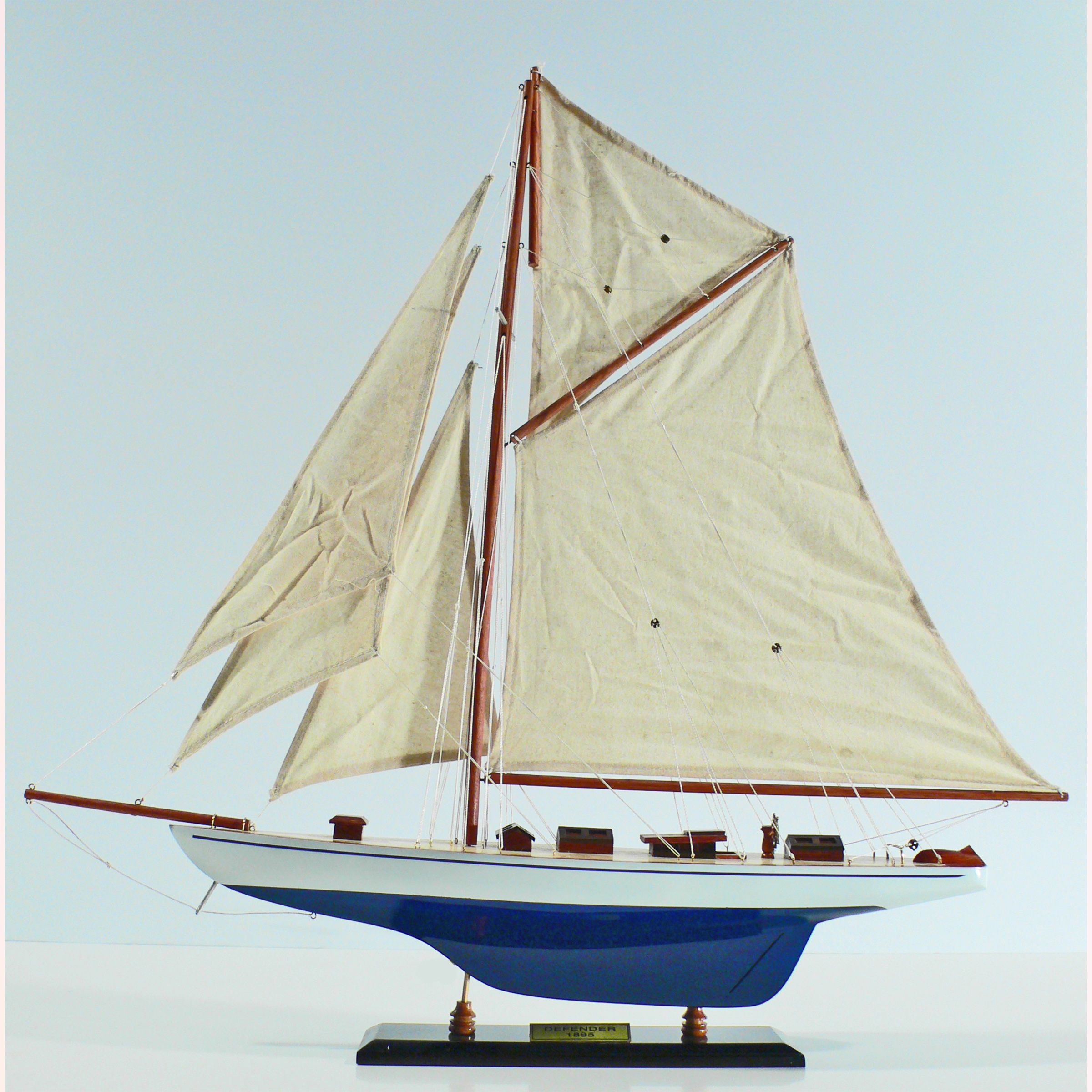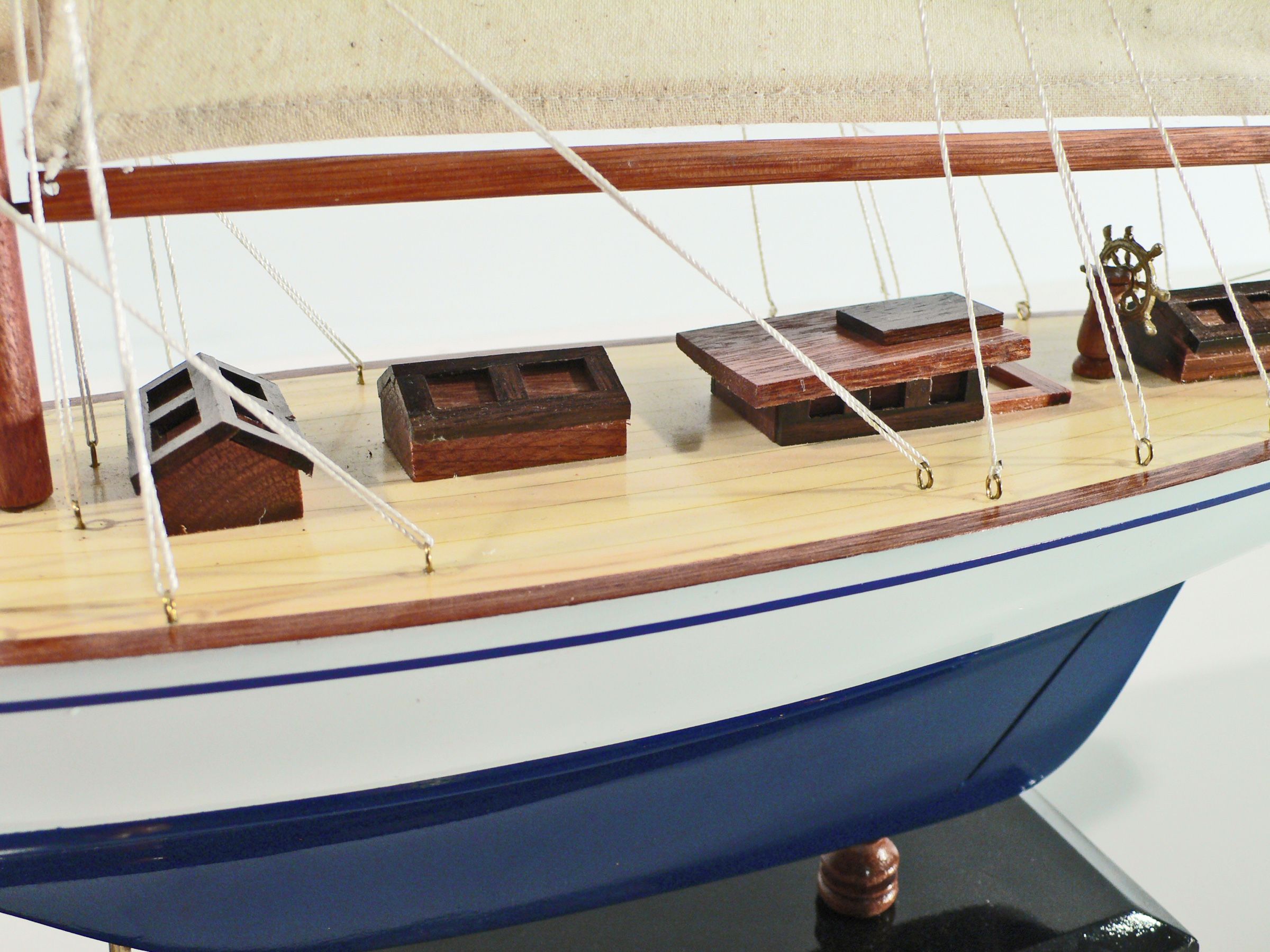 Bei der dargestellten Segelyacht handelt es sich um eine maßstabsgetreue Nachbildung der Defender.