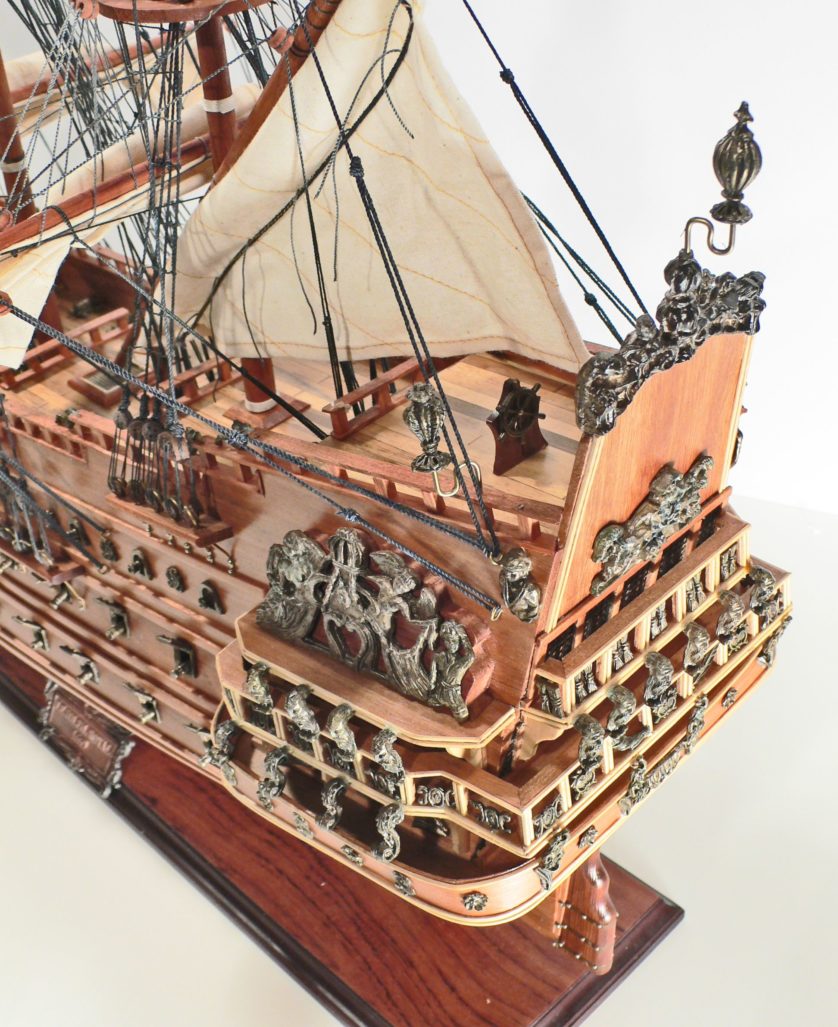 Bei dem dargestellten Schiffsmodell handelt es sich um eine maßstabsgetreue Nachbildung der Le Soleil Royal 1669.