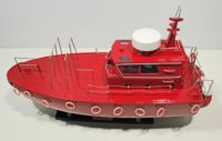 Dieses Modell ist RC Ready. Die Modellform ist von außen und innen mit Epoxidharz und Klarlack abgedichtet und somit gegen das Eindringen von Wasser geschützt. Darüber hinaus befindet sich im Modell ein entsprechender Hohlraum, der die Nachrüstung einer Fernlenkung möglich macht. Ruder und Schraube sind im Produktumfang enthalten, allerdings nicht die entsprechenden Bohrungen.