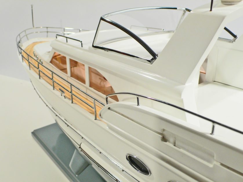 Dabei finden unter anderem exotische Edelhölzer wie Teak, Mahagoni, Rosenholz oder Mango Verwendung, wodurch sich als Endprodukt ein wertvolles und dekoratives Edelmodell ergibt.